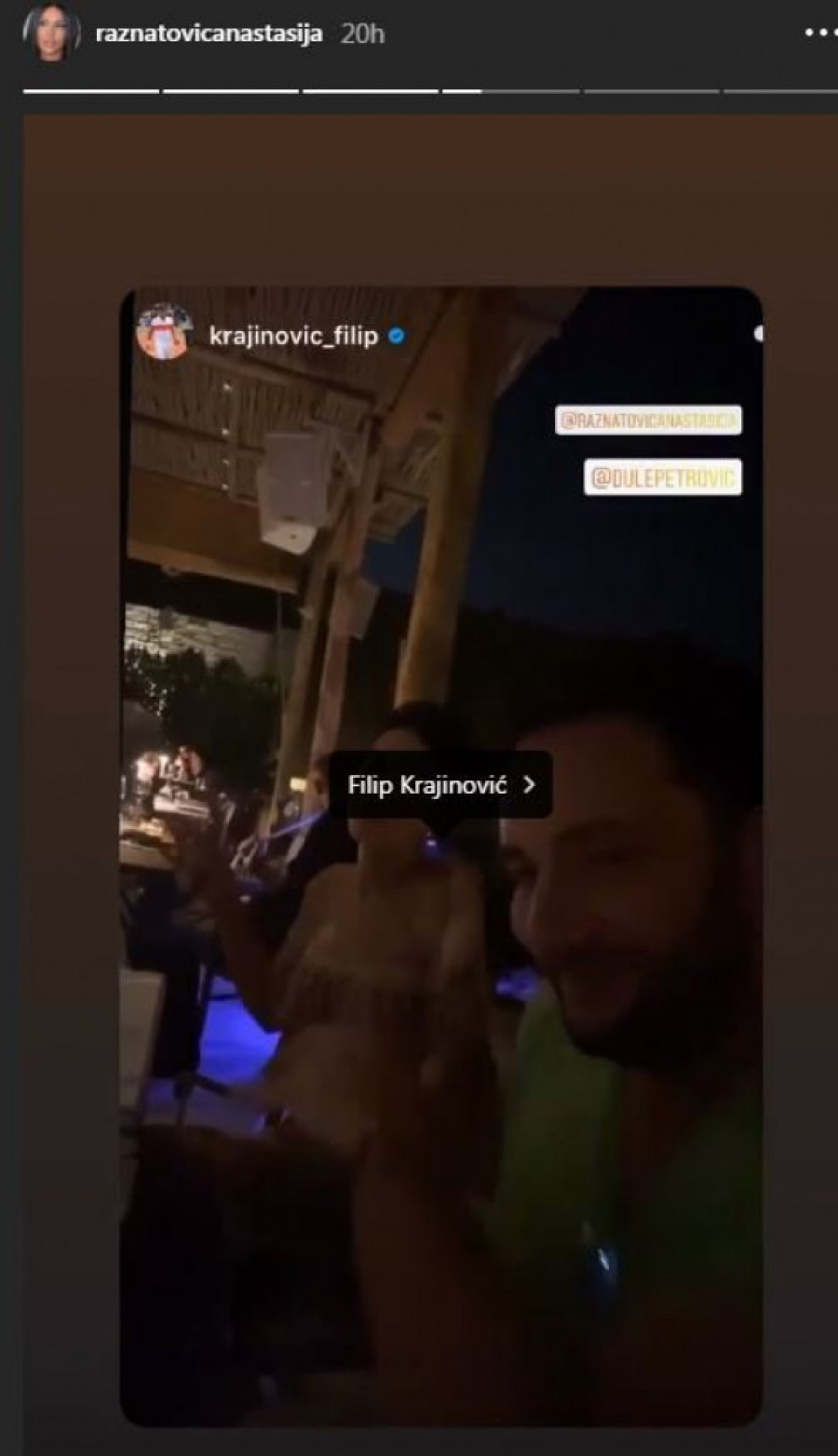 Foto: instagram.com/anastasija ražnatovicNaime, Filip Krajinović je na svojim društvenim mrežama podelio video u kojem je Anastasija i još jedan njihov prijatelj kako zajedno uživaju u noćnom izlasku i dobroj muzici.
