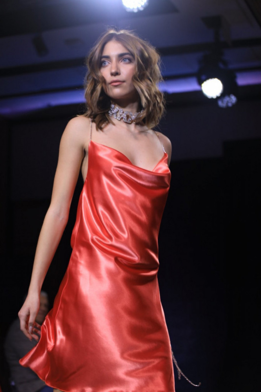 Cela kolekcija laska ženskim oblinama, a na pisti smo mogli videti i dame koje nisu tipične manekenske građe. Saten i čipka bili su vodeći materijali modne linije te se aludiralo na seksepil i ženstvenost.