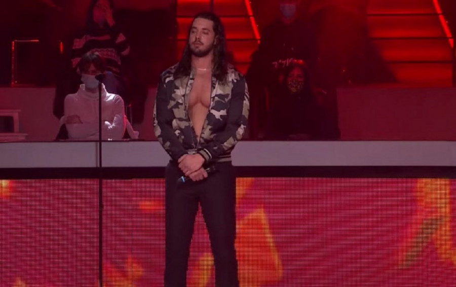 U toku druge pesme, Žarko je raskopčao košulju i pokazao je svoje gole trbušnjake i torzo.