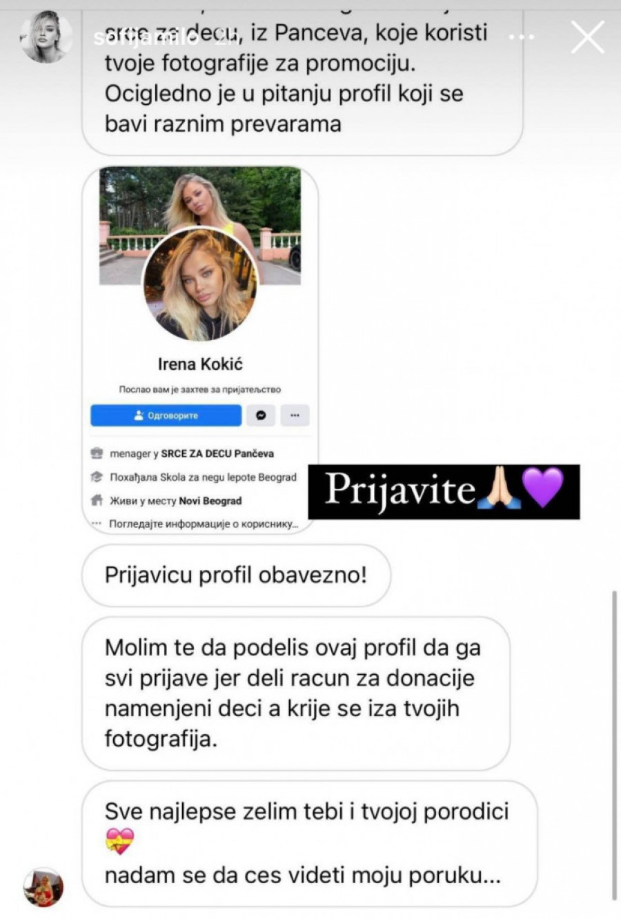 Foto: instagram.com/sofijamiloDa sve bude gore, žena koja je koristila Sofijine fotografije, navodno sakuplja novac za decu, pa je manekenka hitno reagovala.