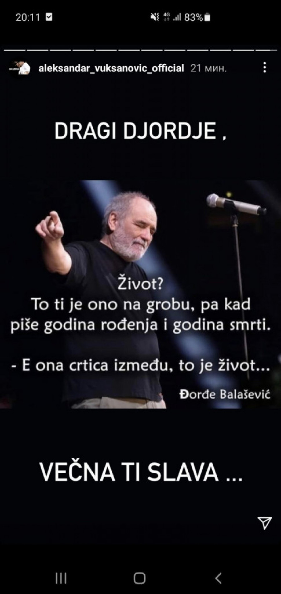 Foto: instagram.com/printscreen- Dragi Đorđe, večna ti slava - napisao je pevač.