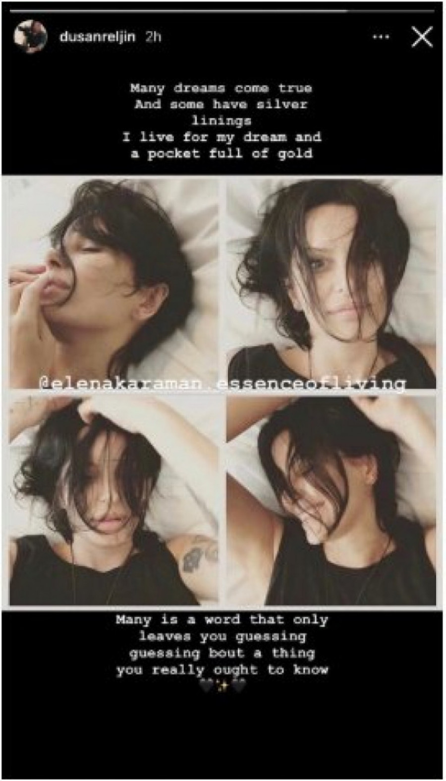 Foto: instagram.com/dusanreljin- Mnogi snovi se ostvare i neki imaju srebrne linije, ja zivim svoj san i dzep pun zlatnika. Mnogo je reč koja te ostavlja da nagđaš, nagađaš o stvarima koji bi hteo da znaš - napisao je fotograf.