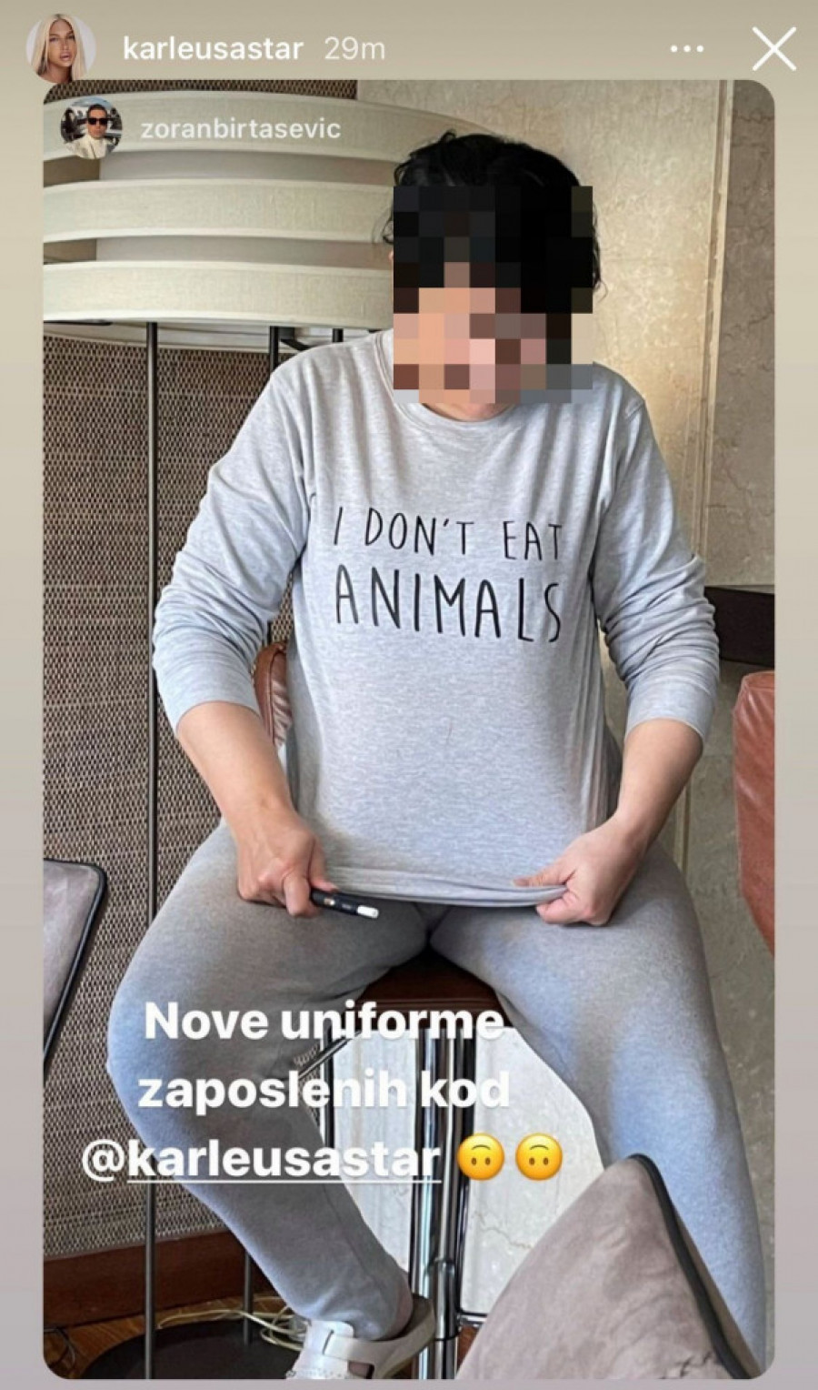 Foto: instagram.com/zoranbirtasevicJelena Karleuša koja je poslednjih godina borac za prava životinje i promoviše veganstvo, izgleda da je i poslugu ubedila da se odrekne mesa Ili je ova gospođa samo morala da promoviše isto što i njena poslodavka.