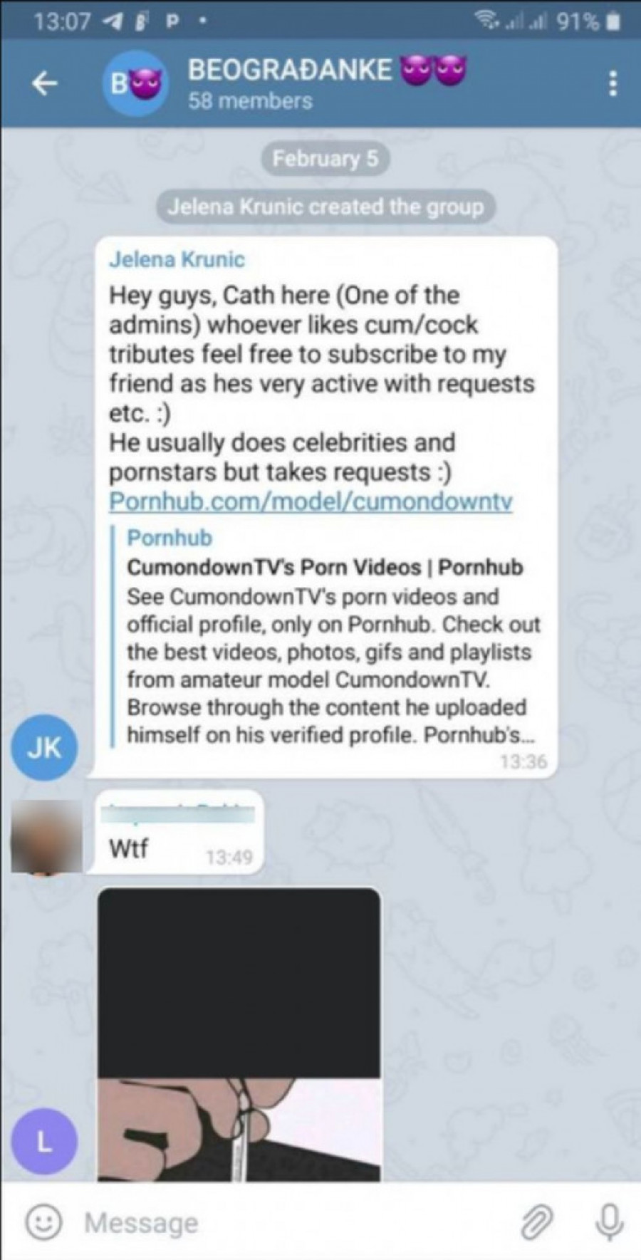 No, nije reč o broju članova grupe, ni da li će neko svoje eksplicitne fotografije da šalje nekome ili možda ipak grupi ljudi, već je probem u tome što je jedna žena, Jelena Krunić, dala sebi za pravo da napravi grupu gde se razmenjuje tuđi eksplicitan sadržaj i pogrdno komentarišu žene.