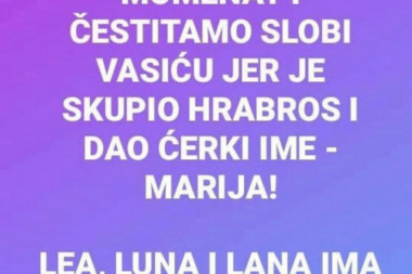 Foto: instagram.com/negujmosrbski- Da odvojimo momenat i čestitamo Slobi Vasiću jer je skupio hrabost i dao ćerki ime Marija!