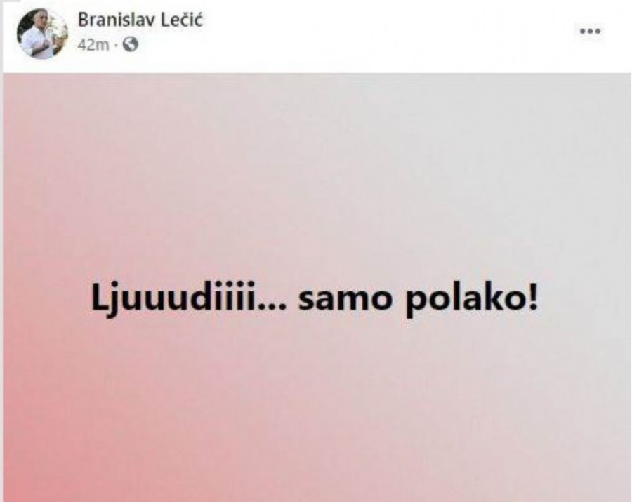 Tačnije, Lečić se oglasio na Fejsbuku rečima: "Ljudi, samo polako", i to nedugo nakon što se u medijima pojavio snimak razgovora na kojem su navodno glumac i glumica.