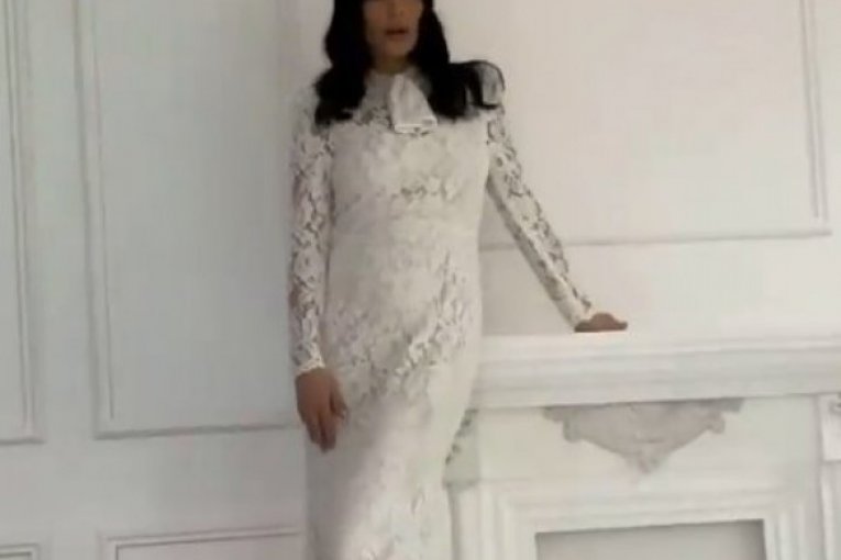 Ona je za potrebe snimanja promenila nekoliko odevnih kombinacija, ali je najviše pažnje, definitivno, privukla bela, čipksta haljina koja neverovatno asocira na venčanicu.