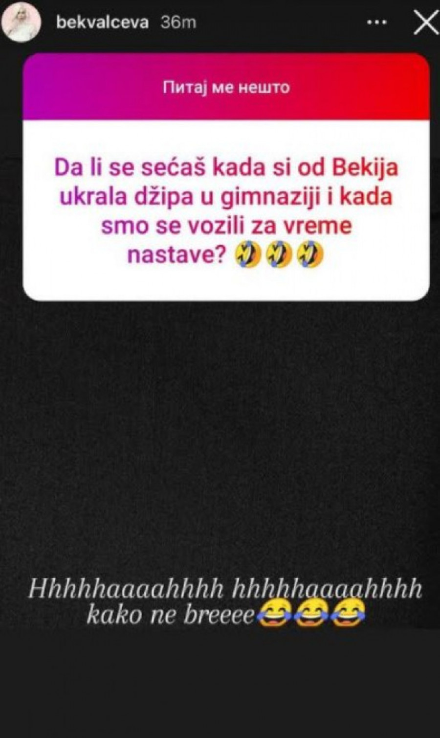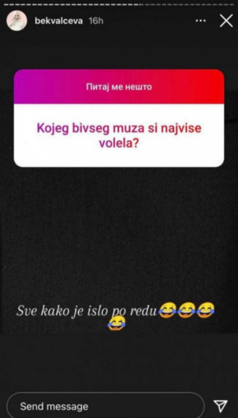 Bekvalčeva je tako otkrila kako je zapravo trebalo da se zove, da li će ponovo stati na "ludi kamen", kao i kog bivšeg muža je najviše volela.