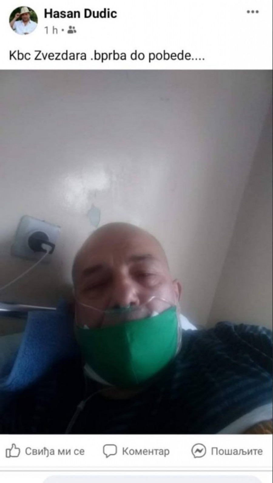 Međutim danas je osvanula potresna slika na Instagramu, iz Kbc Zvezdare, gde je vidno iznuren folker sa maskom na licu napisao: