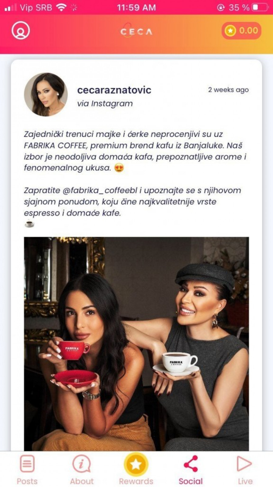 Aplikacije su tek počele sa radom, a u opisu se pozivaju fanovi da budu u toku sa najnovijim Cecinim aktivnostima i vestima, odnosno Anastasijinim i Veljkovim na njihovim aplikacijama, kao i da osvoje vredne nagrade.