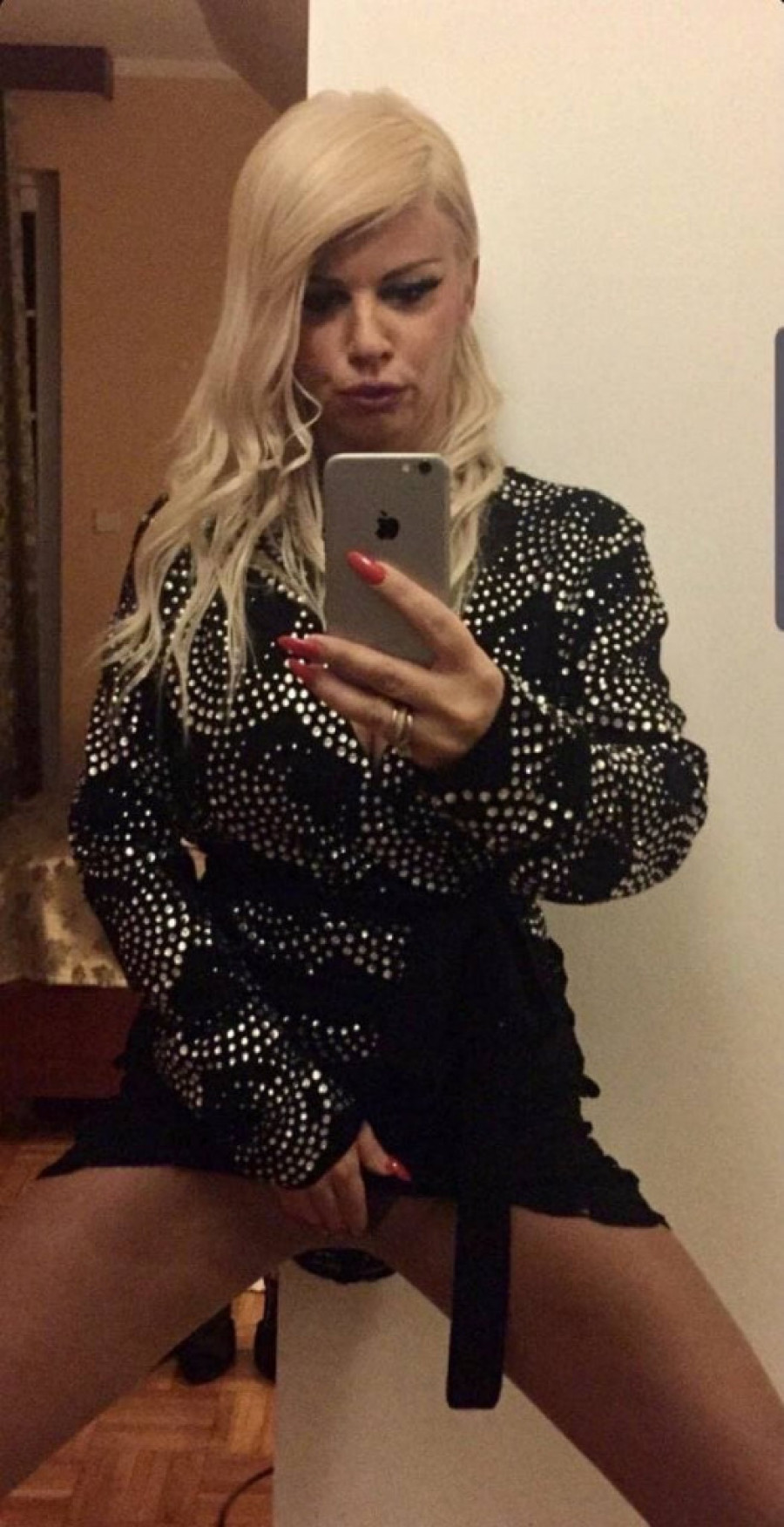 Naime, pevačica se slikala u ogledalu raširenih nogu i dok joj je u jednoj ruci telefon, drugom drži međunožje.