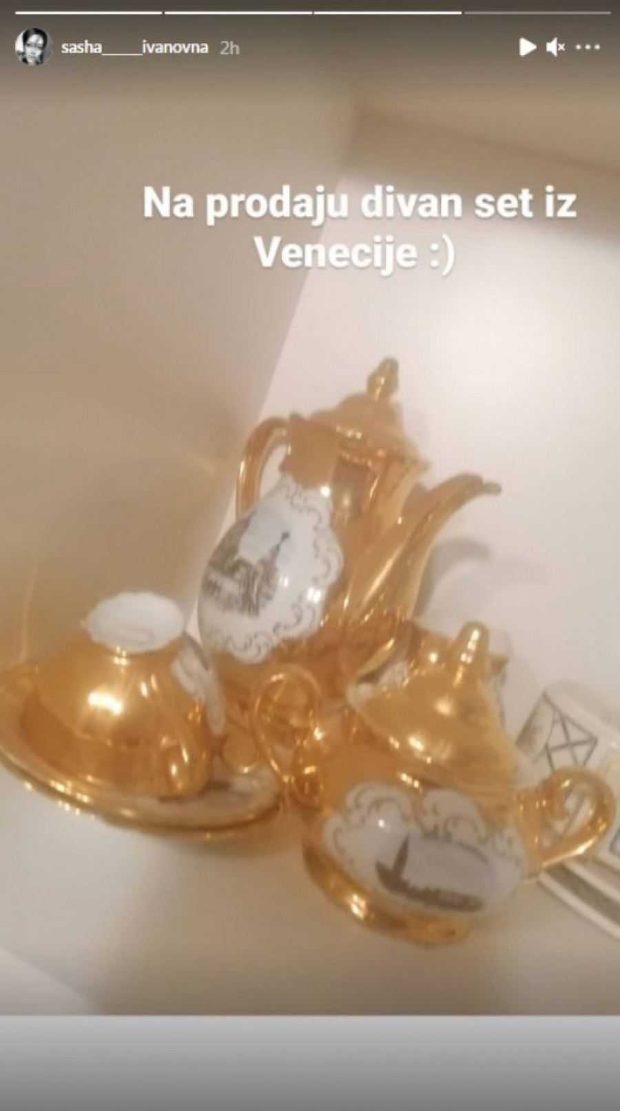 - Na prodaju divan set iz Venecije - napisala je uz narednu fotografiju, na kojoj se vidi čajnik i set šoljica za čaj.