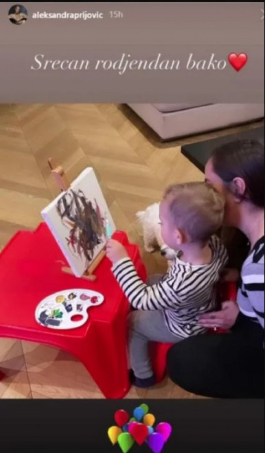 Prijovićka ne objavljuje često svog naslednika na mrežama, ali ga je ovaj put ipak fotografisala, dok je na platnu slikao poklon za svoju baku.