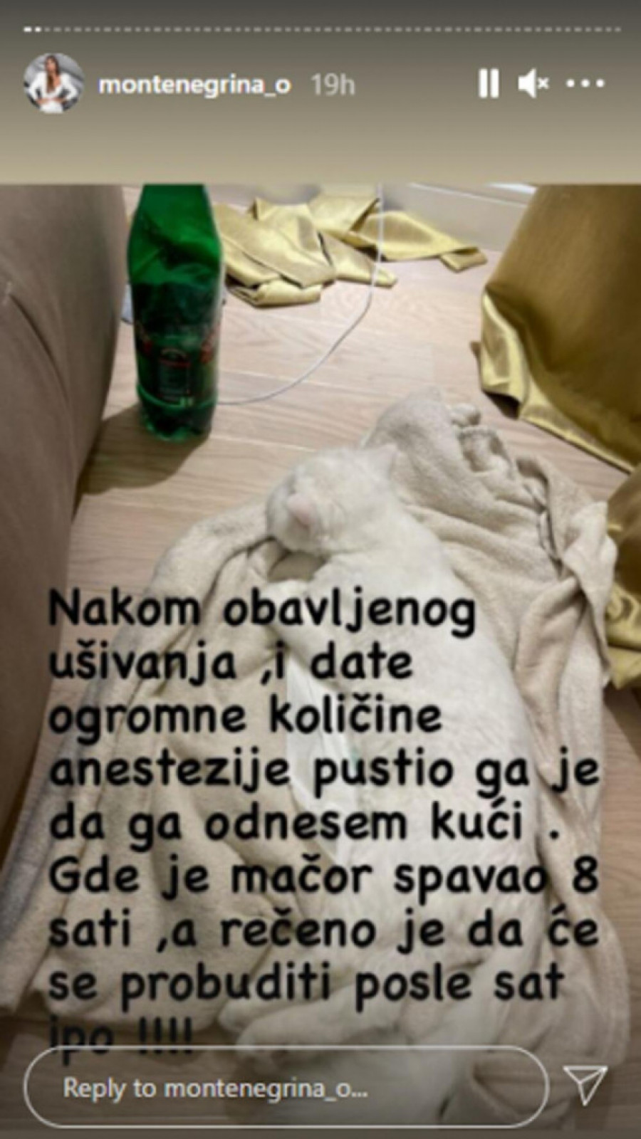 Naime, njen mačak je doživeo povredu i ona ga je odvela u dežurnu veterinarsku ordinaciju gde su se stvari zakomplikovale. Ona je sve javno objavila, čak poslala i apel za Levijatan u kome je navela da je mačak mogao da joj izgubi život nemarnom operacijom da ga nije odvela kod drugog veterinara.