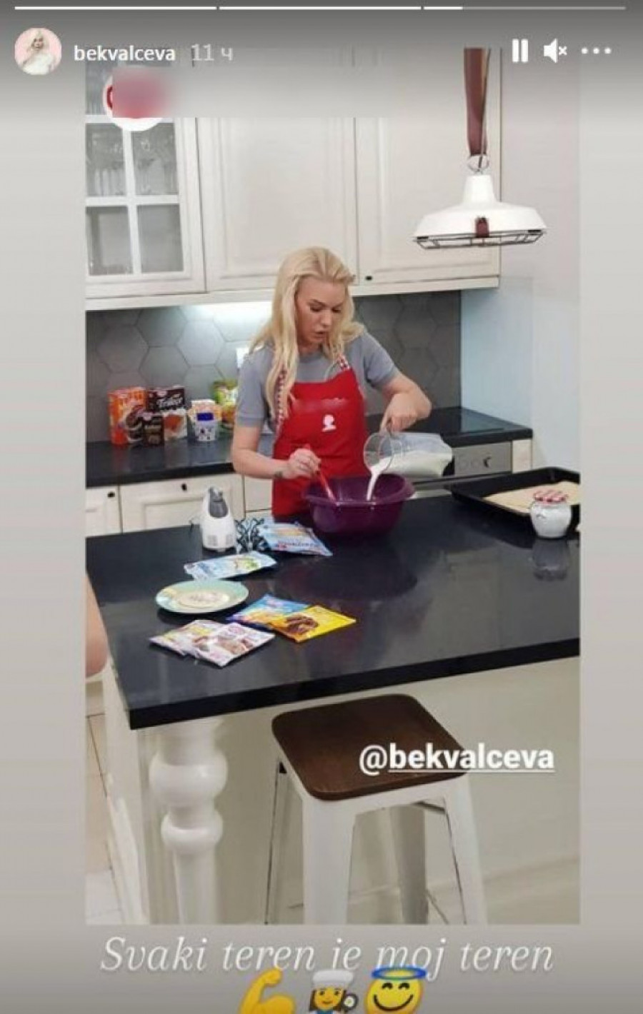 Naime, Bekvalčeva se snimila kako pravi poslasticu, a ne sumnjamo da se i na tom polju dobro snašla.