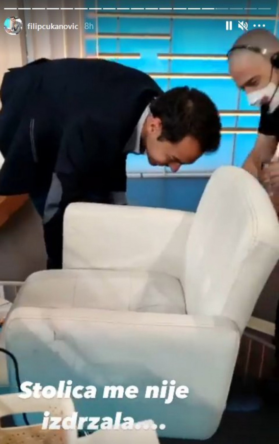Na sve to, stolica na kojoj je sedeo Čukanović je pukla, te je voditelj pao sa nje, što je poslužilo za novu turu smeha: