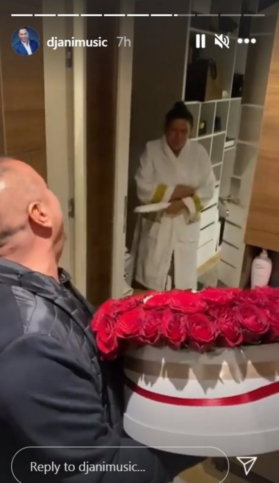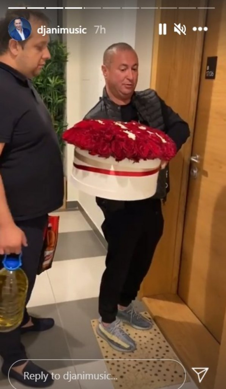Naime, Đani se sa ogromnim buketom ruža pojavio ispred stana, a uz harmoniku je otpevao hit Jašara Ahmedovskog "Kad porastem ženiću te". Slađa je emotivno odreagovala, pa su usledili i poljupci.