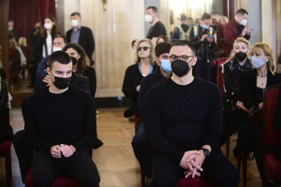 Porodica je ušla u Skupštinu, komemoracija je počela pesmom "Zvizduk u 8", a onda je usledio minut ćutanja.