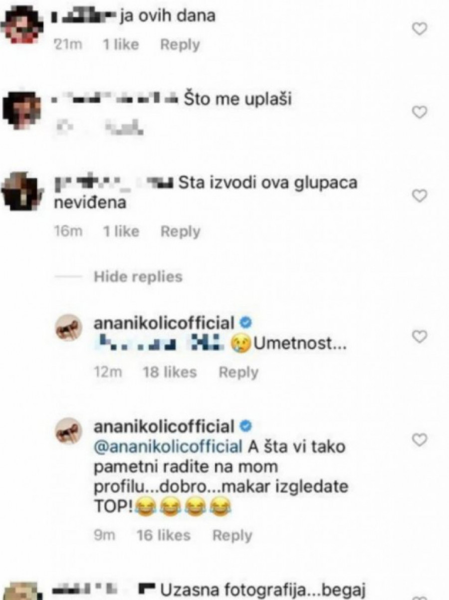 Naime, ova Anina objava izazvala je lavinu šaljivih komentara poput: "Ana Karenjina na aparatima", "Ja kad mi krene alergija, pa mi lakše da se ubijem, hahah", "Gloposti, užasna fotografije"...