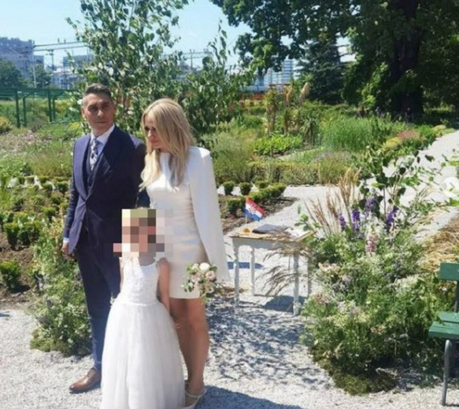 Glumica Marijana Mikulić objavila je zatim fotografiju Jelene s novopečenim suprugom i kćerkicom Lenom, a mlada se odlučila za kratku haljinu modernog kroja.