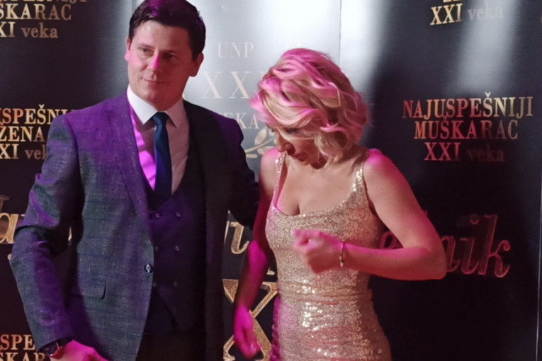 Foto: Republika.rs/G.DJovana je za ovu priliku odabrala elegantnu zlatnu haljinu sa dubokim dekolteom, sa kojim je muku mučila cele večeri.