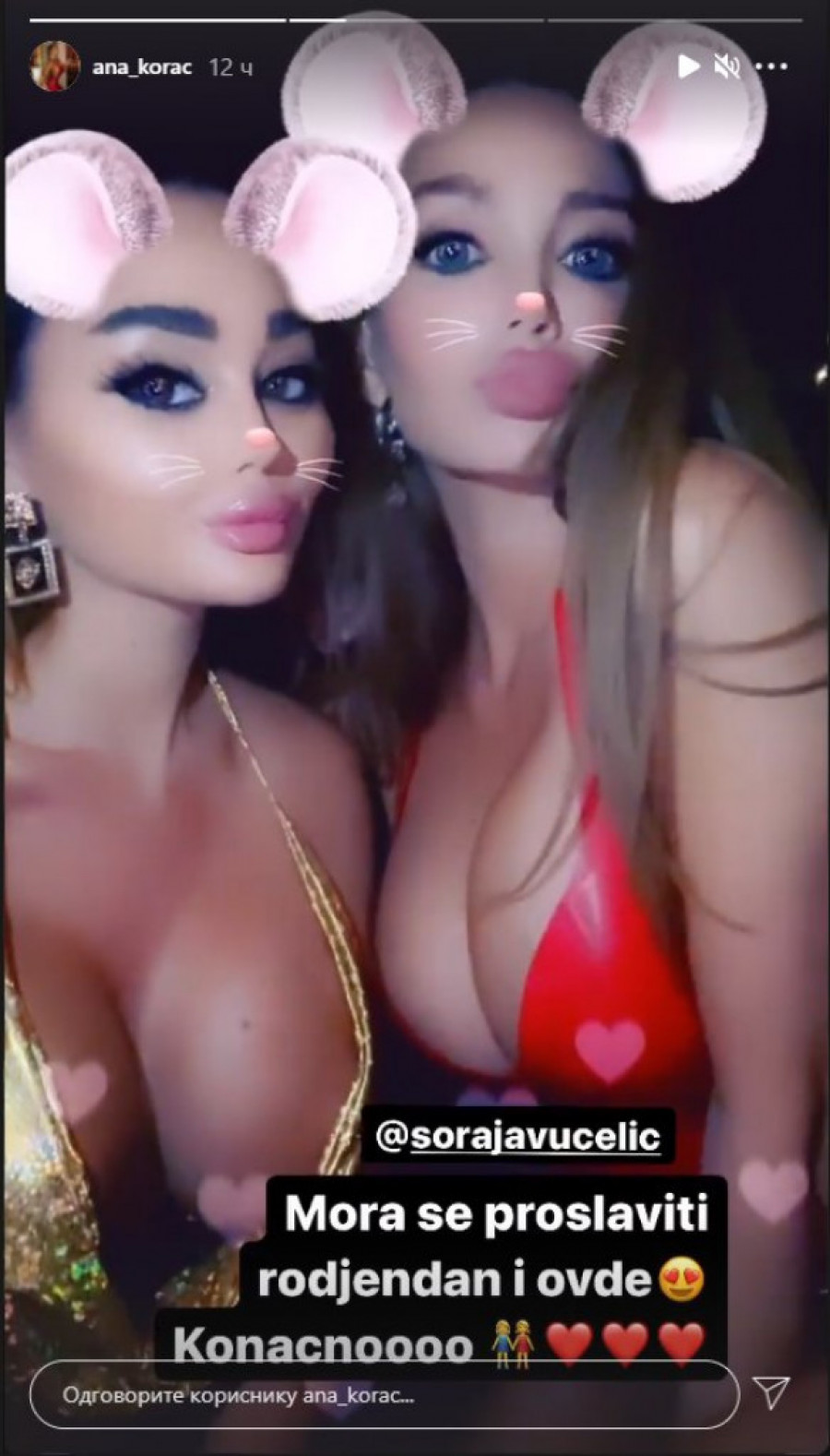 Na Instagram profilu Ana se pohvalila da se našla sa Sorajom kako bi proslavile njen rođendan zajedno, ali nije htela da otkriva lokaciju. Koraćeva je napisala da je lokacija tajna, ali i uz zanimljivu poruku.