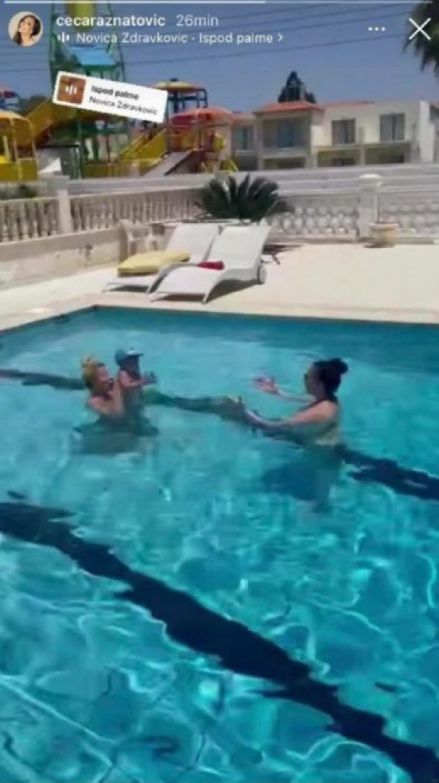 Foto: printscreenNaime, Ceca je na Instagramu objavila snimak iz bazena na kojem se ona i njena sestra Lidija igraju u vodi sa Željkom i dobacuju se loptom.