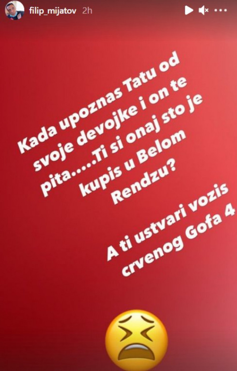 Foto: printscreen/instagram/filip_mijatov-Ti si onaj što je kupiš u belom Rendžu?