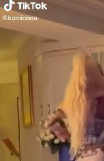 Foto: tiktok.com/printscreenObučena u uski triko koji otkriva njene obline i visoke potpetice, Jelena je rešila da isproba par udaraca i tom prilikom se saplela i pala na zadnjicu.