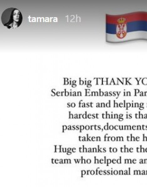 Foto: printscreen/instagram.com/tamaraTamara tvrdi da je stupila u kontakt s nadležnim organima u Francuskoj čim je do nje stigla informacija o pljački, a sve da bi zaštitila lična dokumenta.