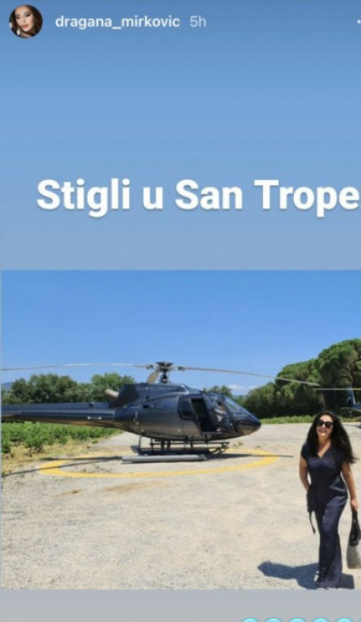 Dragana je svojim pratiocima najavila sledeću destinaciju, Sen Trope, te se kao i svaka svetska zveda helikopterom uputila na novo mesto za luksuno letovanje. Za svoj put odabrala je elegantnu haljinu koja je naglasila njenu figuru, što su primetili mnogi kao i da pevačica izgleda fenomenalno.