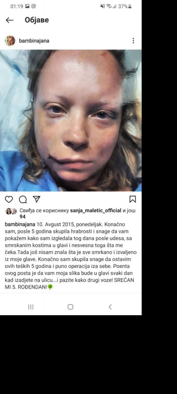 Naime, prošlo je 5 godina od nautomobilske nesreće koju je Bojana doživela, a tom prilikom zadobila je stravične povrede glave, o kojima je tek sada odlulčila da progovori. Ona je okačila fotografiju na Instagram i uz opis htela da ukaže ljudima da budu oprezni u saobraćaju, ali i da je ovo za nju 5 rođendan koji slavi, jer je napokon odlučila da prošlost ostavi iza sebe.
