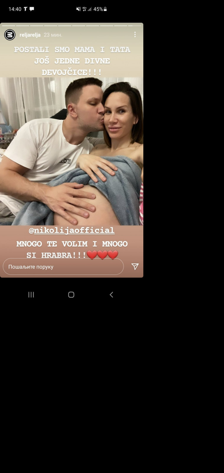 Foto: instagram.com/reljareljaPevač Relja Popović postao je drugi put otac devojčice, koju je njegova voljena Nikolija Jovanović danas donela na svet. Nikolija se pre nekih sat vremena porodila u Narodnom frontu, nakon čega su usledile čestitke sa svih strana, pa su se i njena majka Vesna Zmijanac, a sada i otac njenog deteta oglasili.
