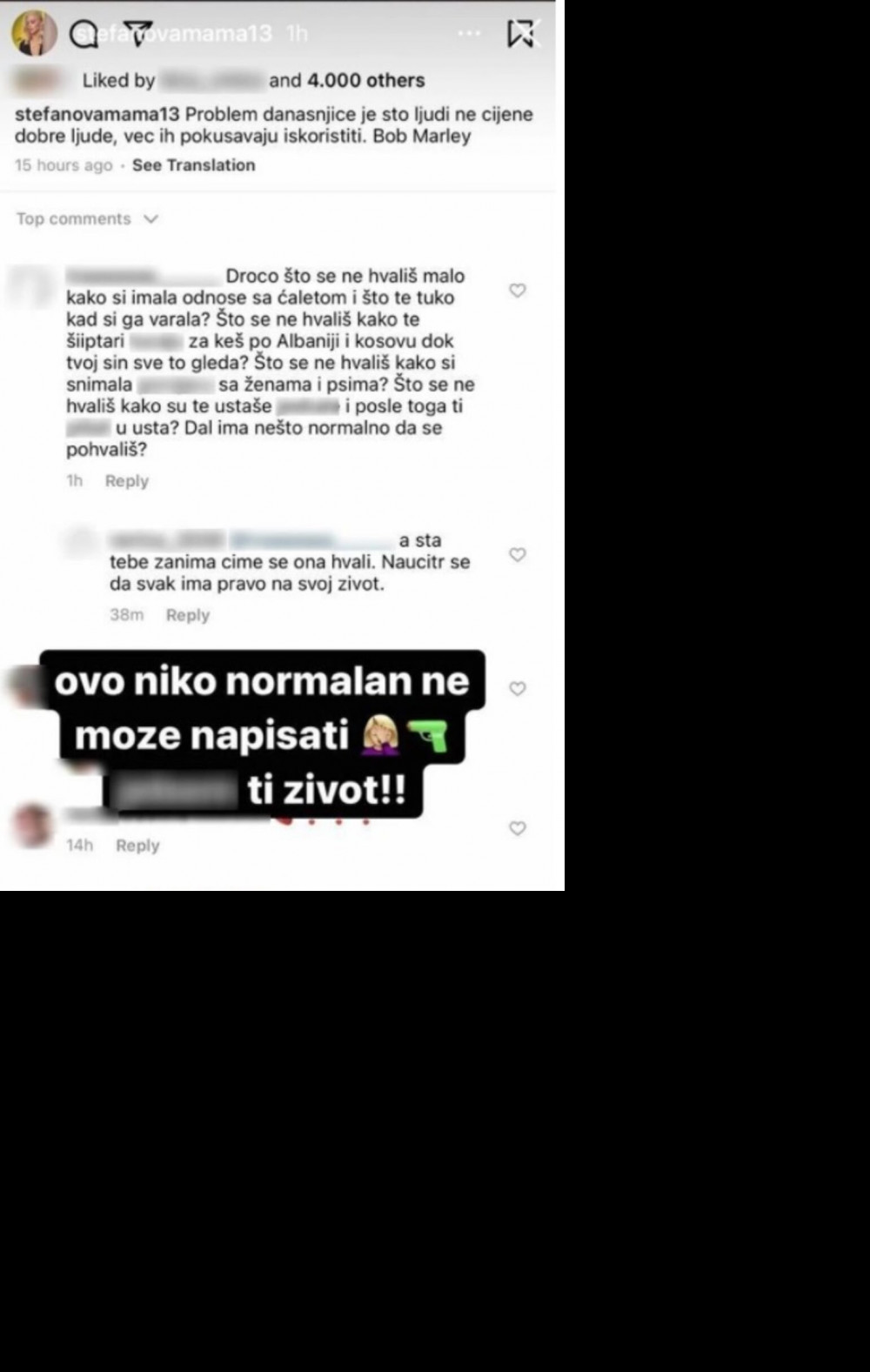 - D*oco, što se ne hvališ malo kako si imala odnose sa ćaletom i što te tukao kad si ga varala? Što se ne hvališ kako te Šiptari t****u za keš po Albaniji i Kosovu dok tvoj sin sve to gleda? Što se ne hvališ kako si snimala po****u sa ženama i psima? - piše u porukama koje je Milica dobila.