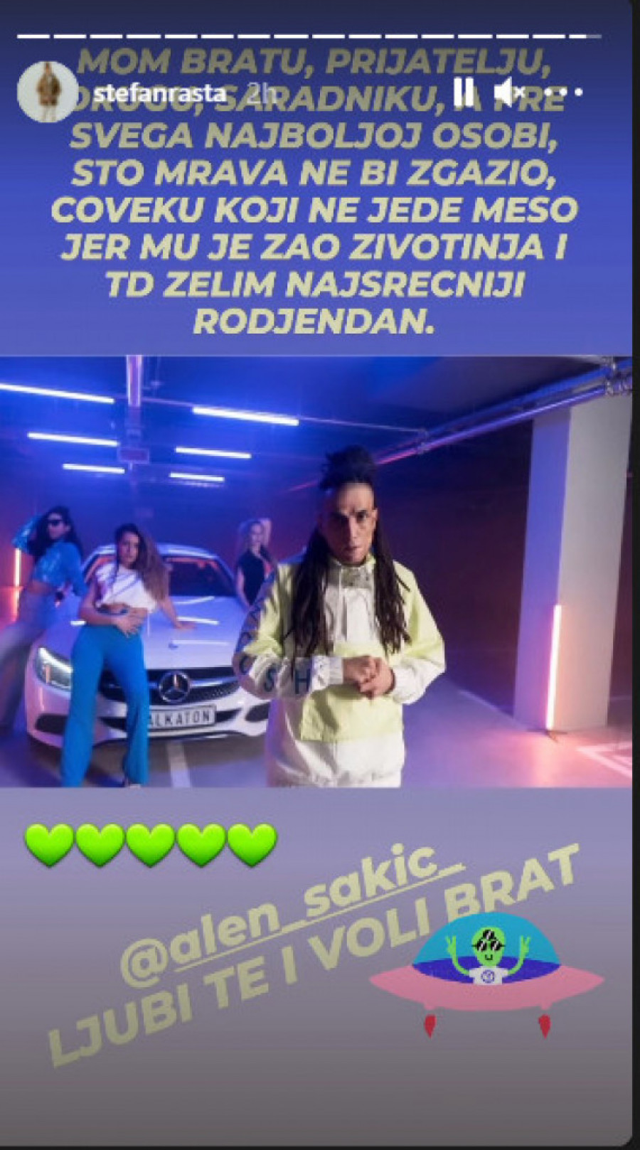 - Mom bratu, prijatelju, saradniku i pre svega najboljolj osobi, što mrava ne bi zgazio, čoveku koji ne jede meso jer mu je žao životinja, želim najsrećniji rođendan - napisao je Rasta na Instagramu.