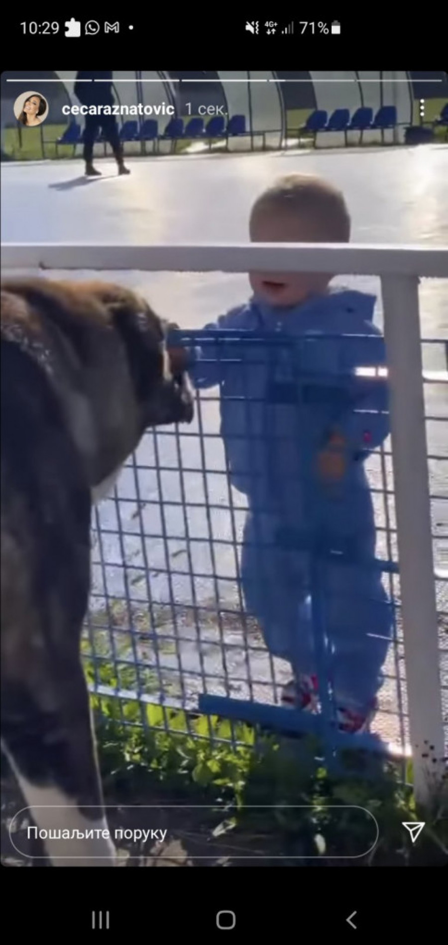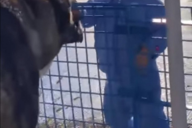 Ovoga puta s njim je bio Veljko na terenu za mali fudbal, a na snimku se vidi Željko dok bez straha mazi ogromnog psa, koji ga je u jednom trenutku i liznuo.