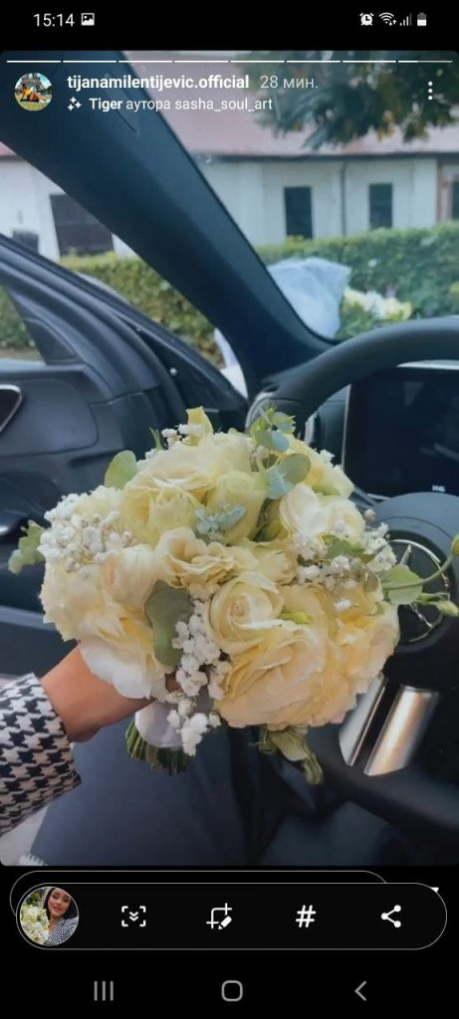 Naime, pevačica raskošnog glasa objavila je na Instagramu da se nalazi na jednoj privatnoj svadbi, no, to ništa ne bi bilo čudno da atraktivna Tijana nije uhvatila bidermajer. Tradicija decenijama unazad je da kada neka devojka uhvati bidermajer na svadbi, obično je ona sledeća mlada koja će izgovoriti sudbonosno ,,da".