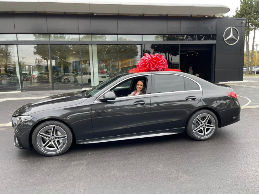 Naime, Tijana sedi u novom Mercedesu na kome se nalazi velika crvena mašnica, a na njenom licu vidi se beskrajno veliki osmeh.