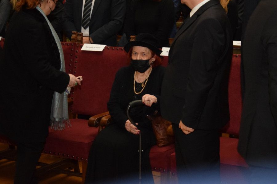 Ana Bekuta stigla je na komemorativni skup posvećen Milutinu Mrkonjiću (79), počasnom članu SPS i narodnom poslaniku koji je preminuo u subotu na Kardio-vaskularnoj klinici na Dedinju.