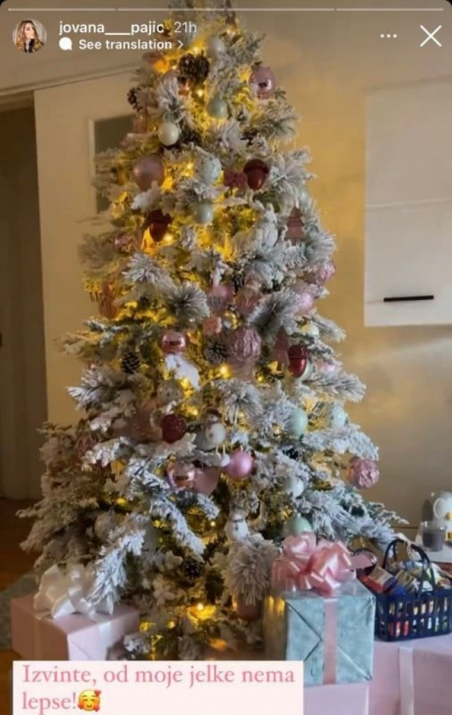 Jovana je na svom Instagram storiju objavila nekoliko klipova okićene jelke i podelila ih sa svojim fanovima i pratiocima.