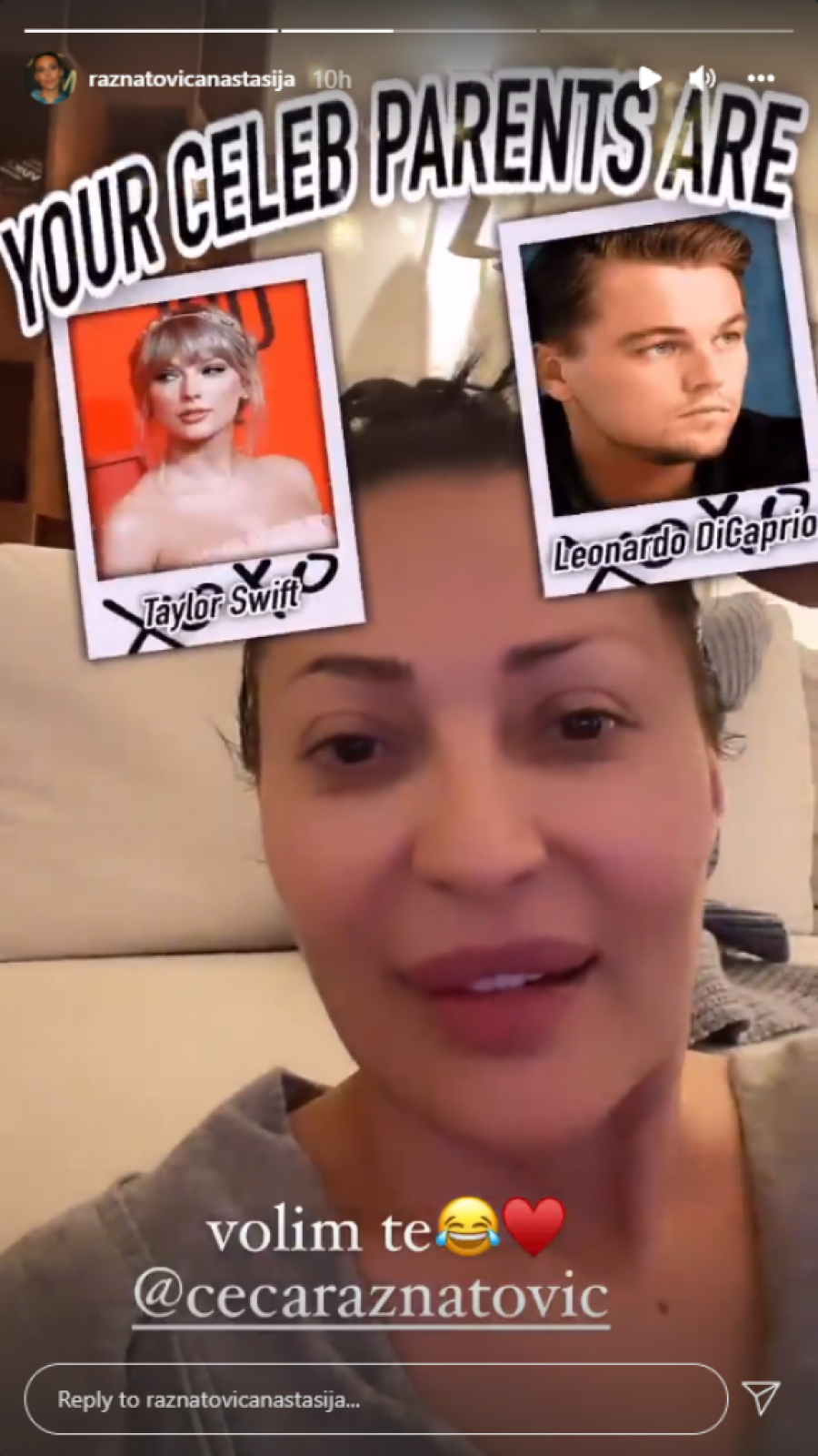 Prvi put kad je isprobala filter, Ceci su roditelji ispali Tejlor Svift i Leonardo Di Kaprijo, ali Ražnatovićka nije bilo posebno zadovoljna, pa je pokušala još jednom.