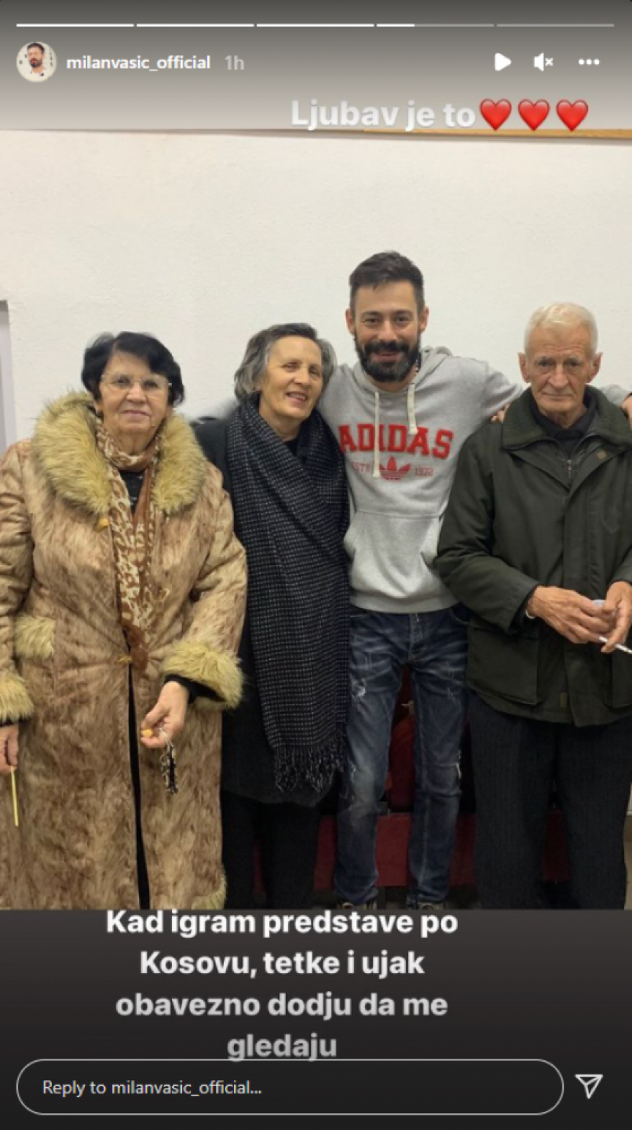 - Kad igram predstavu po Kosovu, tetke i ujak obavezno dođu da me gledaju - napisao je Vasić i dodao: