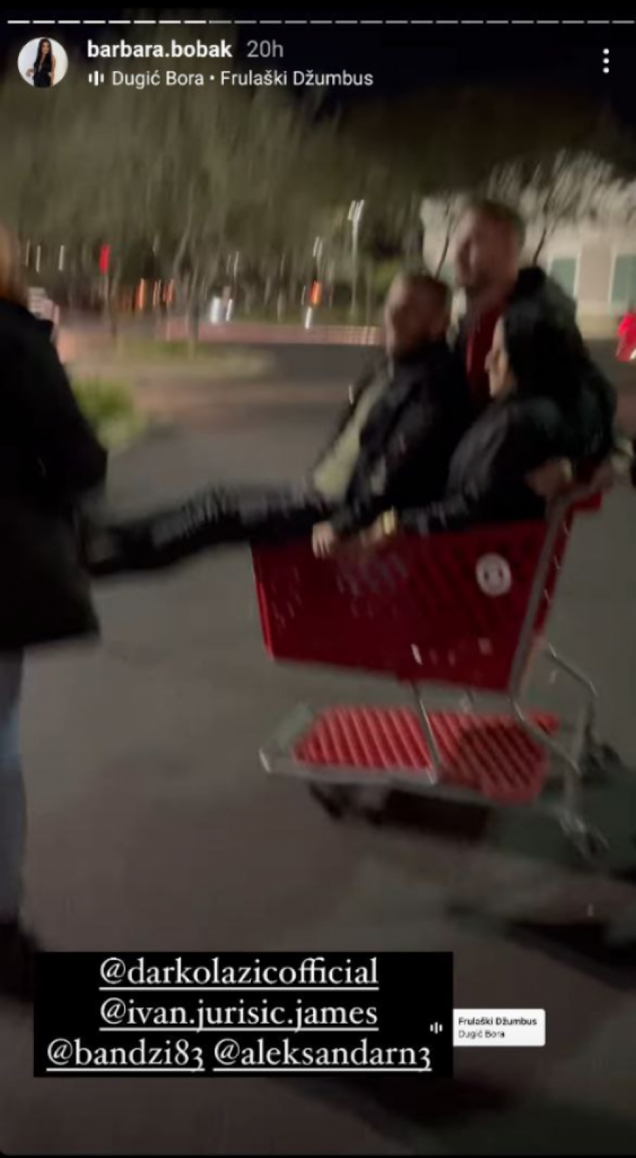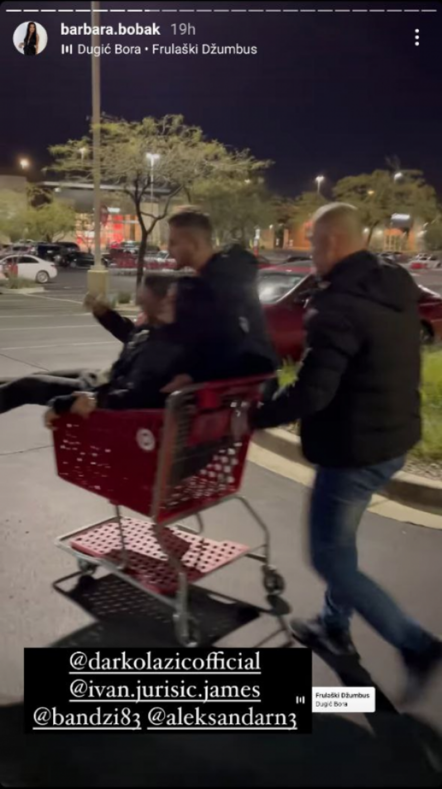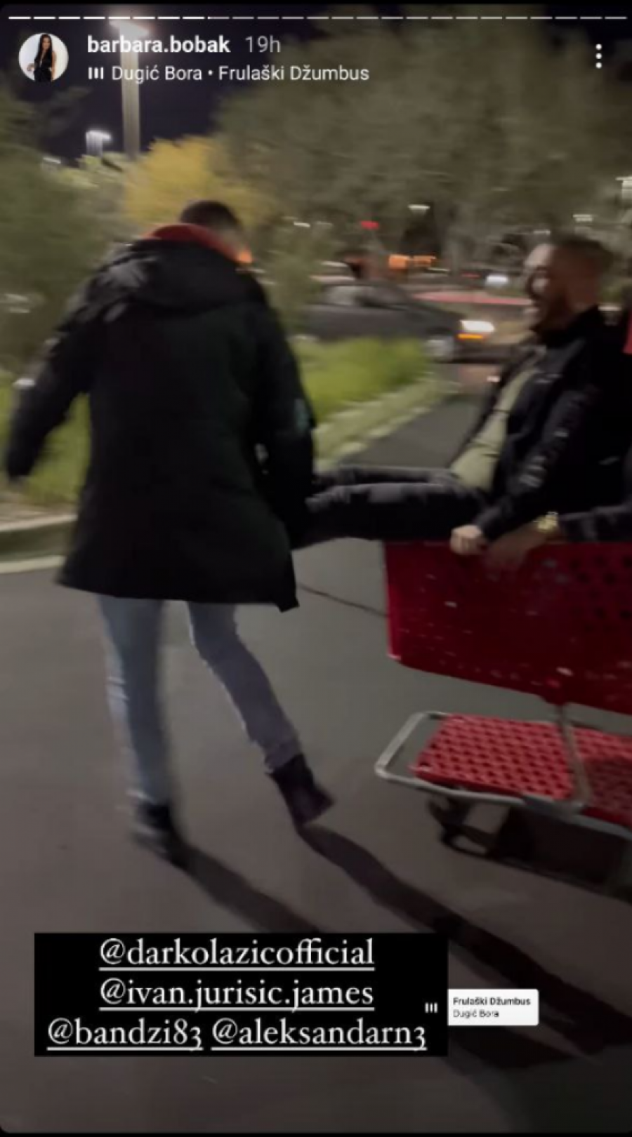 Naime, Barbara je postavila video kako se Darko, njegovi prijatelji i ona voze u kolicima za kupovinu, verovatno od nekog supermarketa.
