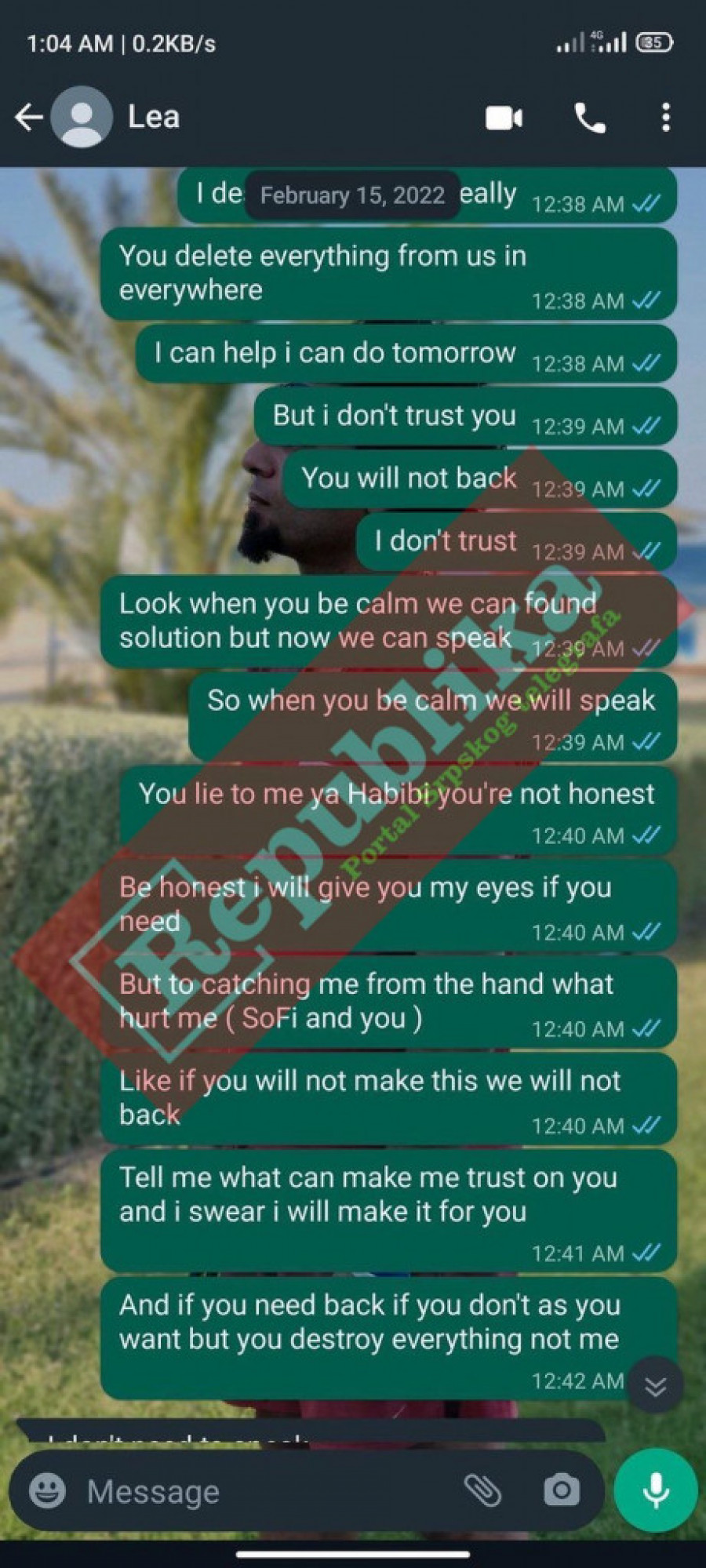 Portal Republika.rs je došla i u posed prepiski Lee i Sajeda u kojima se jasno vidi da Lea menja svoje mišljenje iz dana u dan.