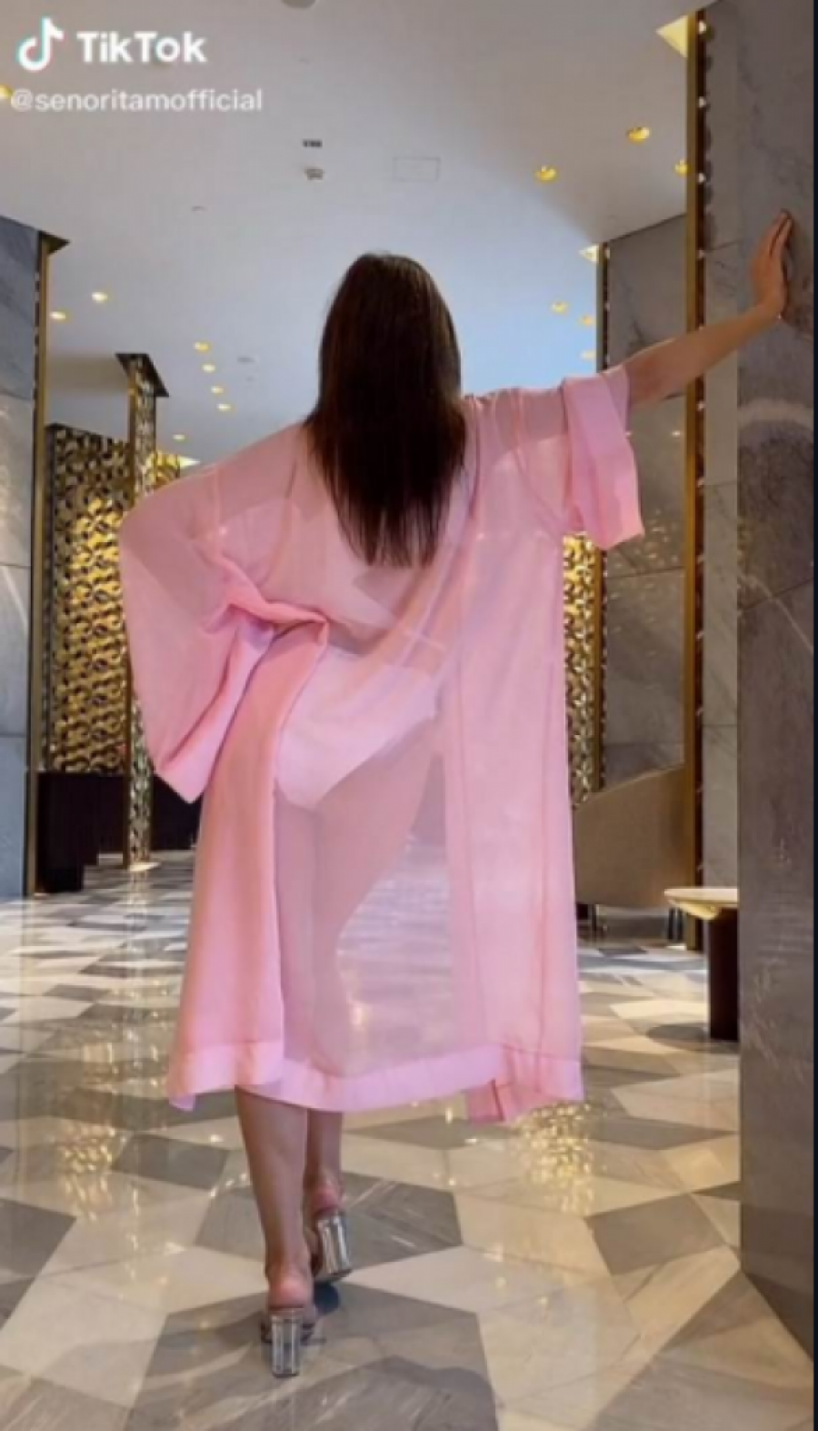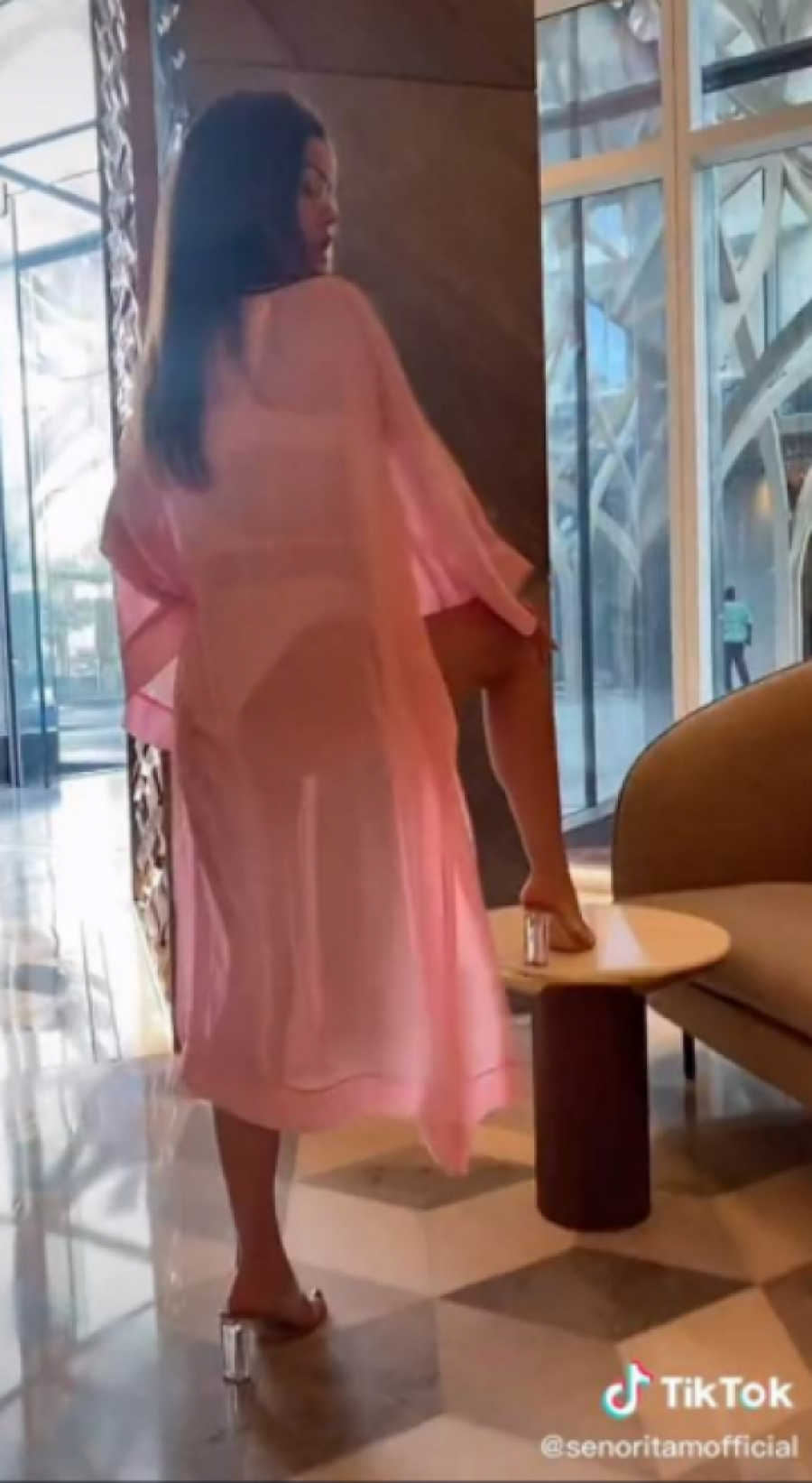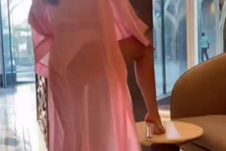 Na njemu vidimo zadnjicu srpske pevačice u providnom ogrtaču, a potom i da je snimak nastao u lobiju hotela.