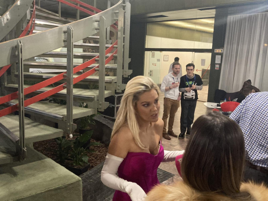 Svi paparaci i objektivi bili su uprsti u njene nemirne grudi, a sve vreme je morala da namešta haljinu kako joj ne bi spala.