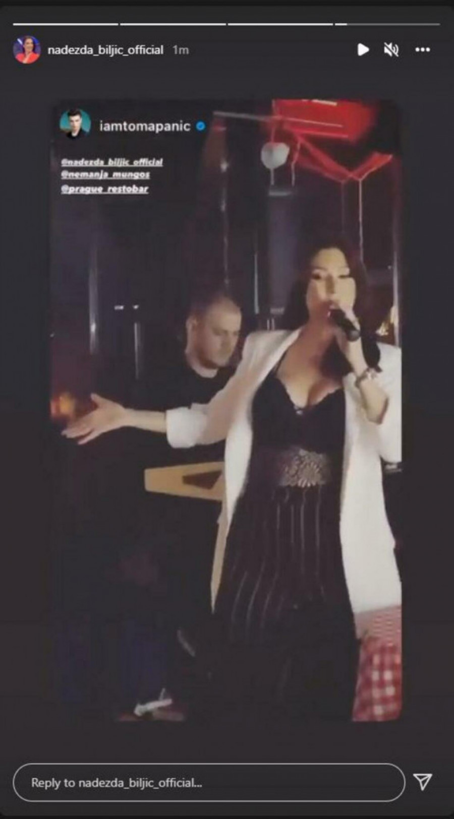 Osim što je prisutne podigla na noge pesmom, mnogima je oko zapalo nikad bujnije poprsje Biljićeve. Njen suprug Toma Panić zabeležio je ove momente, postavivši video u okviru Instagram storija.