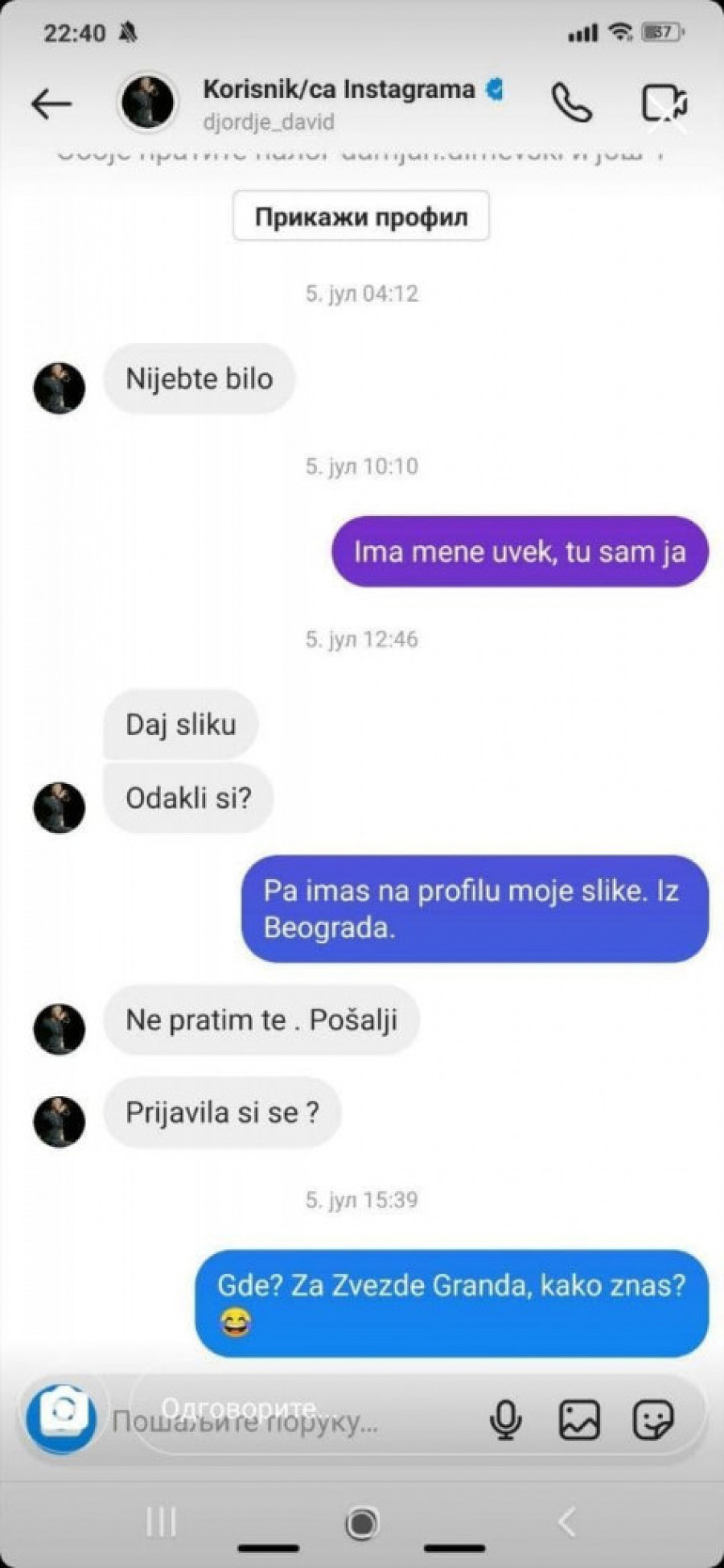 Za kraj nas je zanimalo zašto ga nakon prve takve poruke nije blokirala, ali i zatražila nečiju pomoć.