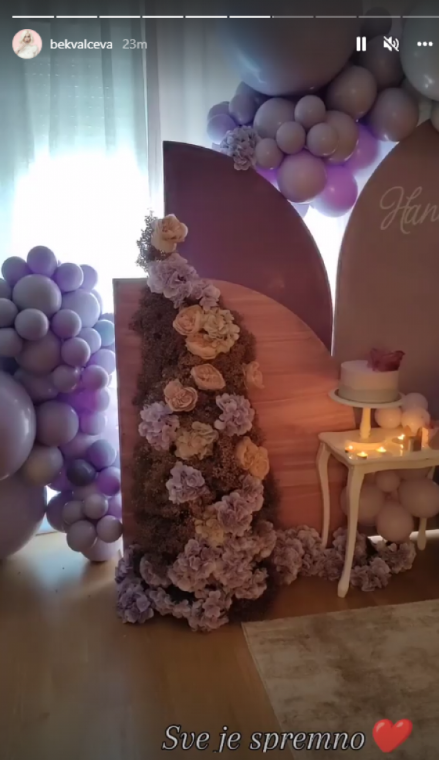 Dekoracija je na nivou, ima mnogo balona i lila cveća, a Nataša je sve objavila na Instagramu.