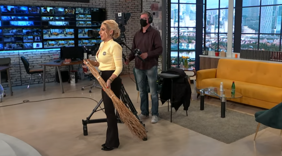 Jovana Jeremić "isprobala metlu" u emisiji.